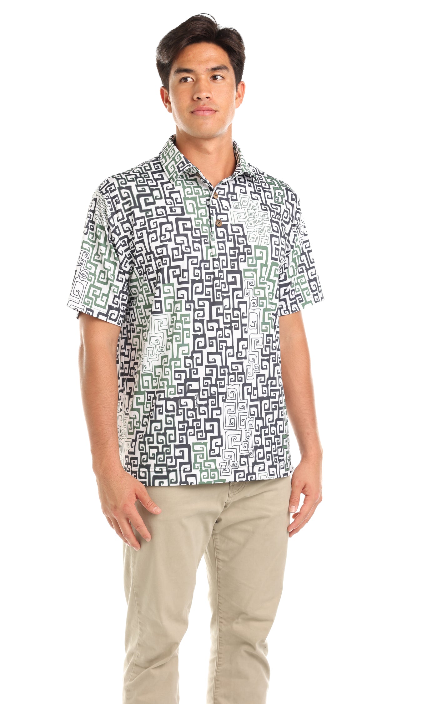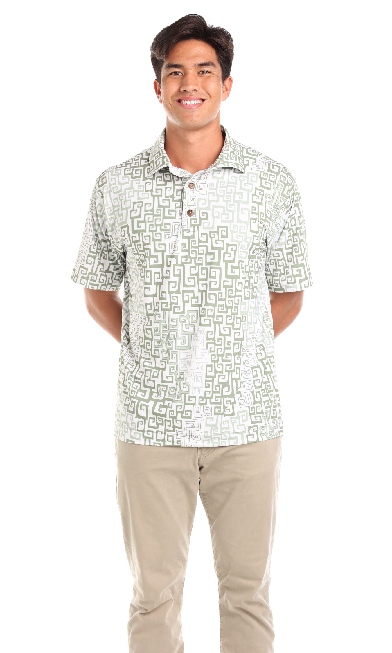 These handsome knit polos have a richly-textured look and refined feel. Our original designs wrap the front and back of these men's polo shirts.