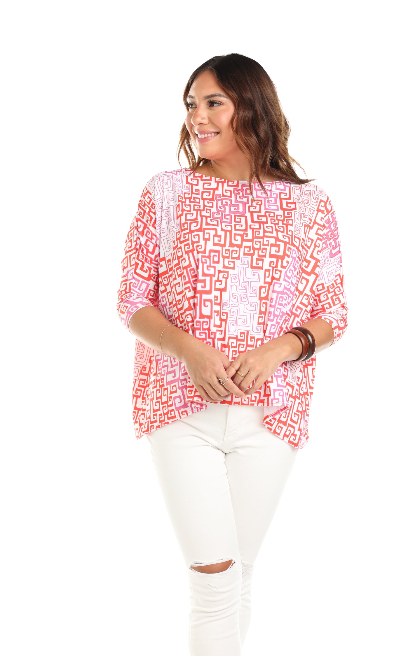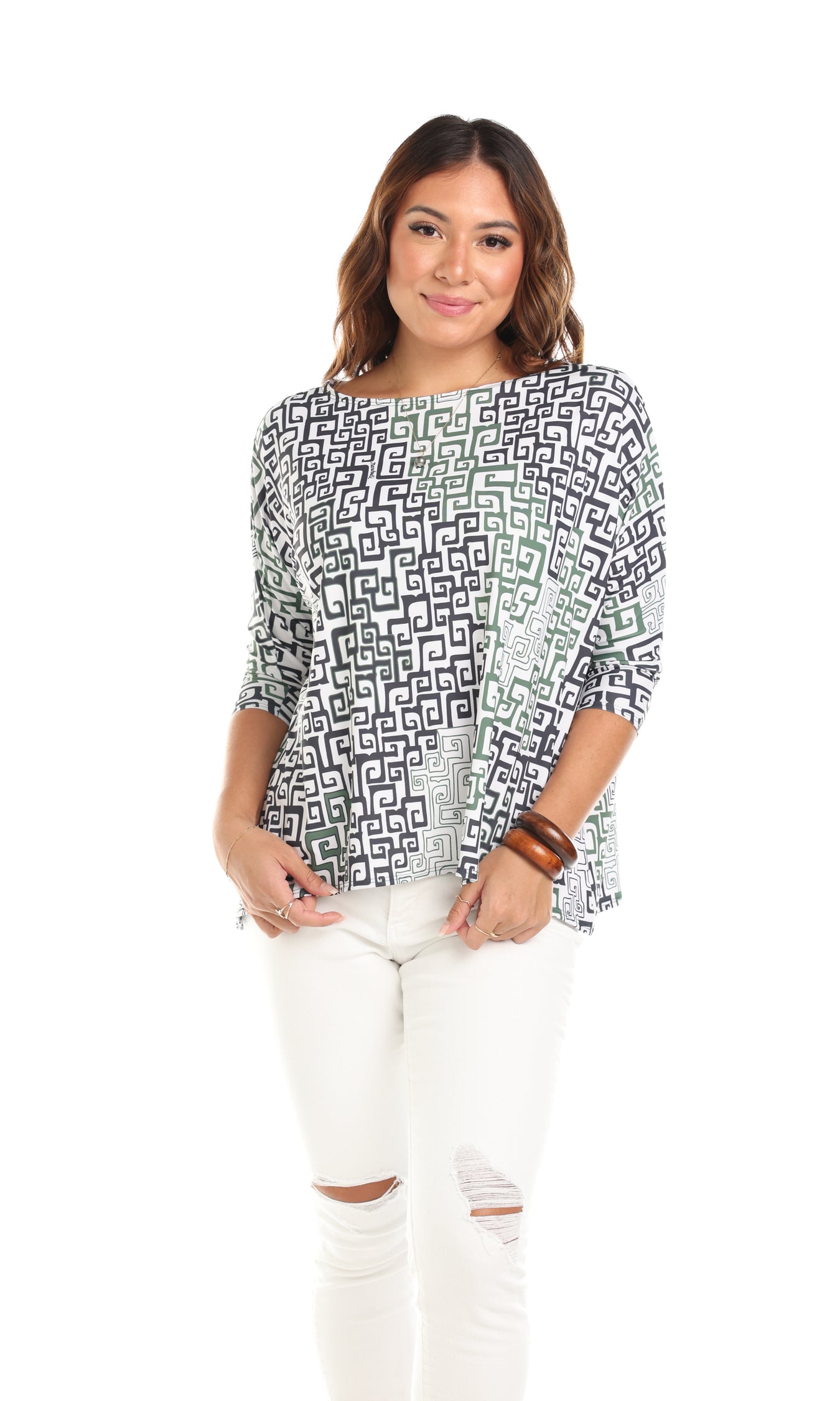 Our Sammie top highlights a timeless, sophisticated silhouette with boat neckline and 3/4 fitted sleeve.